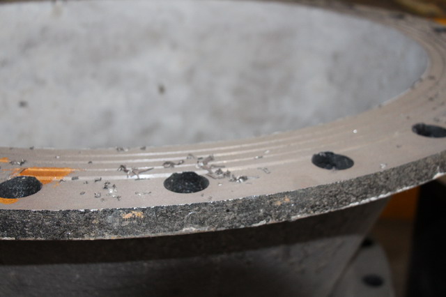 消失模所用的涂料是水基涂料,浸涂時(shí)使泡沫塑料模樣變濕,降低了剛度,烘干后產(chǎn)生變形,造成了球墨鑄鐵管件變形。這種變形如生產(chǎn)在承插口部位,可使其公差尺寸或橢圓度超標(biāo),使球墨鑄鐵管件報(bào)廢。這種缺陷一度是造成廢品的最主要原因。后來用鋁制或聚氯乙烯定型環(huán)的方法得到了解決,即在涂料前將定型環(huán)放入承插口內(nèi)徑,在第一次涂料烘干后,消失模的剛度明顯增加再涂第二次涂料,即可消除變形。